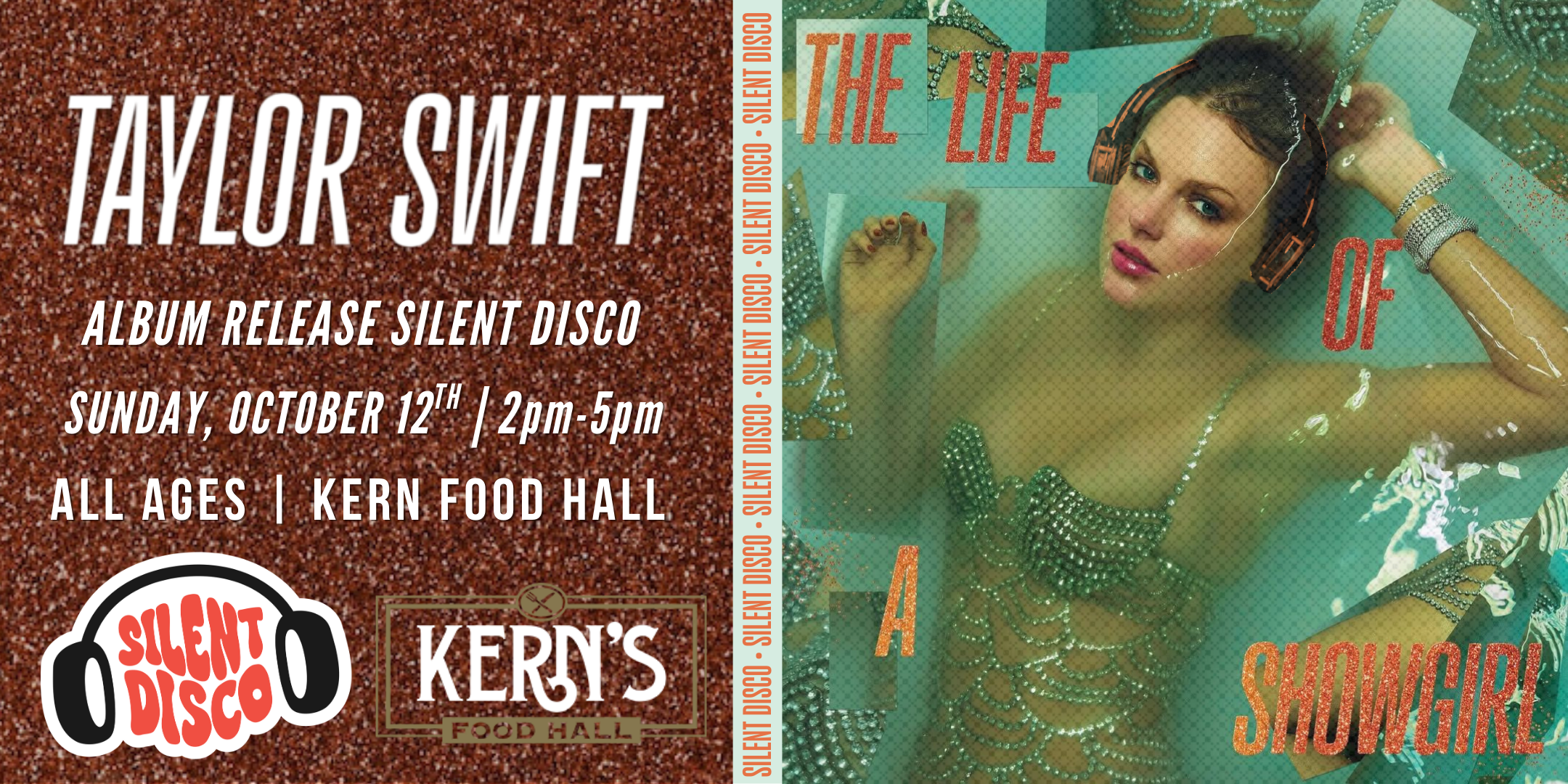 Back to All Events All Ages Taylor Swift Silent Disco Album Release Party at Kern’s Food Hall Sunday, October 12, 2025 2:00 PM 5:00 PM Kern's Food Hall 2201 Kerns Rising Way Knoxville, TN, 37920 United States (map) Google Calendar ICS